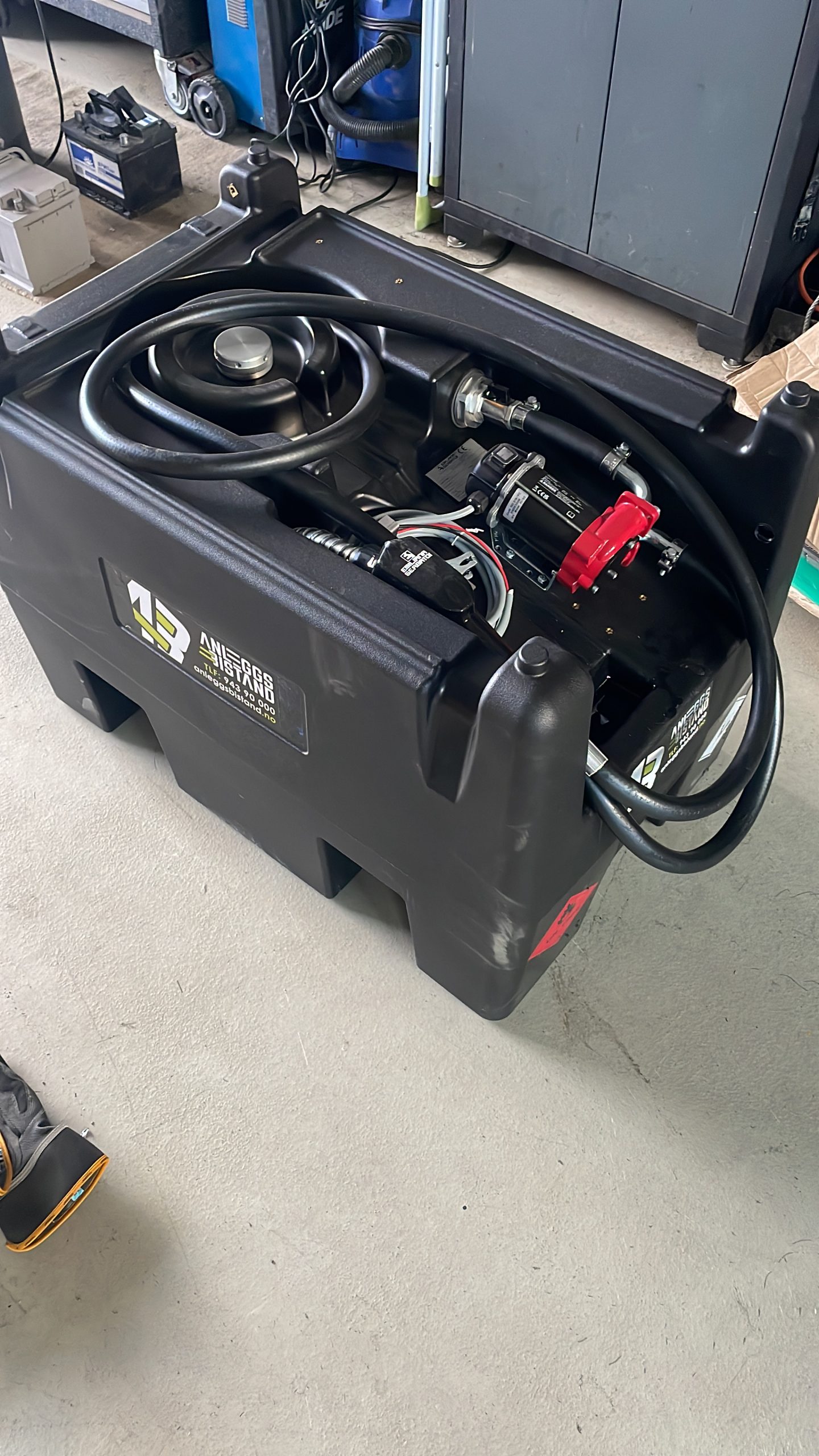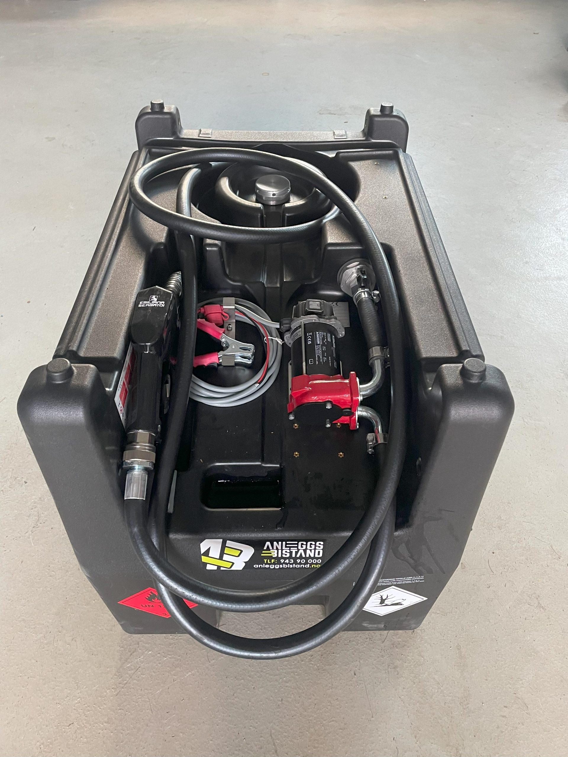 En mobil og allsidig dieseltank på kun 24 kg som er perfekt til å ha med seg rundt på arbeidsplassen. Integrerte spor til gaffel og stramming med stropper. Kommer med 12/24 volts pumpe på 155 watt og pistol.
